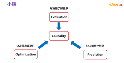不管是做策略评估,还是策略优化、策略个体效果预测,实际上都是在利用因果关系(Causality),来对决策了解更多,让决策表现更好,或者让决策变得更加个性化。当然针对不同的场景,还有很多开放性的问题。