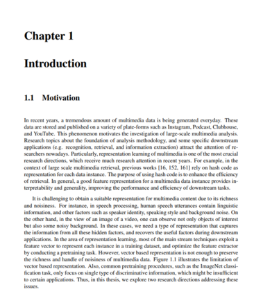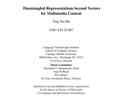 近年来,在Instagram、Podcast、Clubhouse、YouTube等各种平台上产生和发布了大量的多媒体数据。这一现象启发了大规模多媒体分析的研究工作,包括分析方法的基础,以及一些具体的下游应用(如识别、检索和信息提取)。特别是多媒体的表示学习是其中最重要的研究方向之一。一个良好的多媒体数据实例特征表示具有可解释性和通用性,可以提高下游任务的性能和效率。 由于多媒体内容的丰富性和噪声性,对其进行良好的表示具有挑战性。例如,在语音处理任务中,人类的话语包含语言信息,以及说话人的身份、说话风格和背景噪声等其他因素。在这种情况下,我们需要一种表示类型,它从所有这些因素中捕获信息,并为下游应用程序恢复有用的因素。大多数主流技术利用特征向量来表示训练数据集中的每个实例,并通过进行预训练任务来优化特征提取器。然而,基于向量的表示方法不足以保持多媒体数据的丰富度和处理噪声。此外,常见的预训练程序,如计算机视觉研究领域的ImageNet分类任务,只关注单一类型的鉴别信息,对于某些应用可能是不够的。因此,在本文中,我探索了两个研究方向来解决这些问题。 在本文的第一部分,我提出了两种新的多媒体内容表示类型:概率分布和线性子空间。与基于向量的表示方法相比,这两种方法都能较好地处理多媒体的丰富度和噪声。为了在下游任务中利用这两种表示,设计特定的算法和训练策略是必要的。在这部分论文中,我介绍了将分布和子空间表示与深度神经网络架构相结合的方法,这些方法可以端到端地进行优化。在下游任务上的实验结果表明,与主流的向量表示方法相比,本文提出的两种表示方法具有更好的性能。 在本文的第二部分,我研究了风格和内容解纠缠技术,它明确地保留了表征学习过程中多媒体内容中的不同因素。解纠缠表示提供了更好的可解释性,并允许在数据合成场景中操纵隐藏因素。基于这一动机,我提出了两种方法来有效地分离多媒体数据中的隐藏因素。第一种方法将风格和内容之间的关系建模为隐藏特征空间中的简单矩阵操作。第二种方法通过制定对抗训练准则来最小化两个隐藏因素之间的互信息。在数据合成/生成任务的定性和定量实验中,评价了两种方法的优势。此外,我进一步论证了风格和内容解纠缠技术的适用性,通过构建一个预训练框架与生成模型。具体来说,生成模型产生的合成数据可以支持语音识别、人的重新识别等下游任务的监督训练过程。此外,解缠生成过程将数据扩充的思想从原始数据空间扩展到可解释的表示空间,允许我们在下游任务中纳入更多的先验知识。
