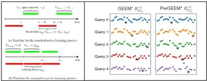 左图: 常规主动学习算法 vs. 抢占式主动学习.