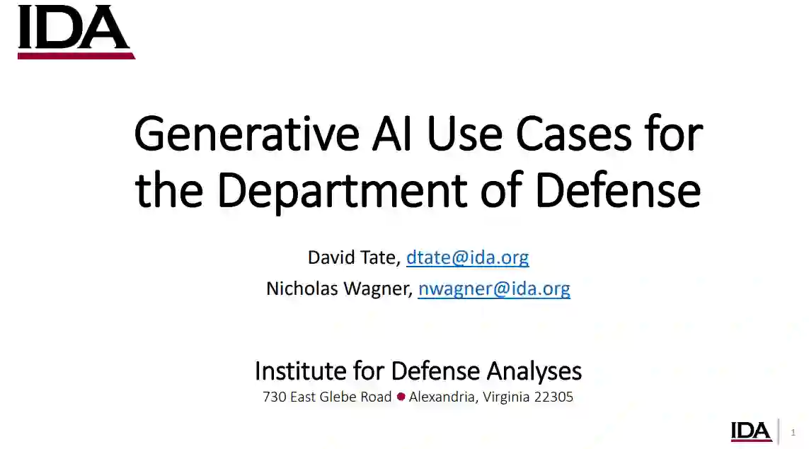 国防分析研究所IDA目前对生成式人工智能的研究