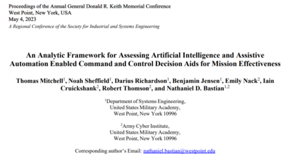 美国陆军目前正在开发决策辅助系统,将人工智能和辅助自动化(AI/AA)技术纳入作战空间。根据美国陆军机动中心的说法,士兵在决策辅助系统等人工智能/自动化系统的协助下,战斗效率可提高10倍(Aliotta,2022)。决策援助是一种工具,旨在协助指挥官在战斗场景中减少他们的决策时间,同时提高决策质量和任务效率(Shaneman, George, & Busart, 2022);这些工具有助于整理作战数据流,协助指挥官进行战场感知,以帮助他们做出明智、实时的决策。与使用AI/AA决策辅助工具相关的一个问题是,陆军目前缺乏一个有效的框架来评估工具在作战环境中的使用。因此,在本文中,我们描述了我们的研究、设计和开发的分析框架,并结合建模和仿真,以评估AI/AA决策辅助工具在任务有效性方面的情况。