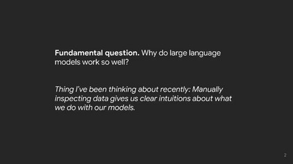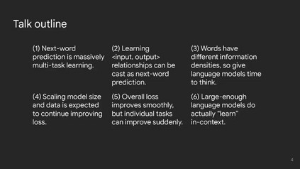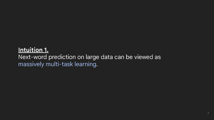 我讨论了一些关于我个人如何理解大型语言模型的非常简单的直觉。 以下是六种直觉: (1) 首先,将下一个词的预测视为大规模多任务学习。尽管下一个词的预测非常简单,但因为预训练数据非常庞大且多样化,语言模型(LM)通过下一个词的预测学习了很多任务。这可以涵盖从简单的语法到更难的任务,比如算术推理。任何可以在预训练数据中找到的东西,都有可能被LM学习。 (2) 接下来,从<input, output>对(即上下文学习)中学习可以被看作是下一个词的预测。这在GPT-3论文中得到了普及([链接])。用<input, output>对来构建任务非常方便,因为这是我们在过去几十年中进行人工智能研究的方式。然而,我不确定这种情况会持续多久。我们可以通过添加自然语言指令、展示推理过程、列举边界情况、给出不应该做的示例等方式做得更好。 (3) 一个基本的观察是,token具有非常不同的信息密度。有些token很容易预测(例如,“大型语言___”显然是“模型”)。其他token则很难预测(例如,数学问题的答案),因此LM在尝试预测它们之前应该花费更多的计算。做到这一点的一种方式是链式思考提示([链接]),它鼓励LM在给出最终答案之前给出一个推理路径,使它们能够完成复杂的推理任务。我梦想着有一天AI能够帮助我们完成极其具有挑战性的任务,比如撰写减少气候变化的提案。在推理上花费更多计算是朝这个方向迈出的第一步。 (4) 预训练时增加计算量预计将改善损失(规模定律,[链接])。这似乎很简单,但损失没有饱和的事实意味着继续投资于扩展将可能产生更有能力的模型。为什么扩展可以提高性能,这是一个自然的问题;我的两个揣测假设是:(1) 大型LM可以记住更多关于世界的知识,(2) 大型LM使用更复杂的启发式方法来尽可能降低损失。 (5) 尽管整体损失随规模平滑改善,但个别任务可能会突然改善(突现能力,[链接])。由于下一个词的预测是大规模多任务学习,你可以将损失视为许多个别任务的加权和。当你减少损失时,可能不是所有个别任务都均匀改善。一些任务的损失可能已饱和(更大的模型在语法上不再有改进,因为它们已经拥有完美的语法),而其他任务可能以更突然的方式改善(为了进一步降低损失,更大的模型必须弄清楚如何解决难度大的数学问题)。 (6) 最后,我认为大型LM实际上可以在上下文中学习<input, output>关系。尽管一篇论文显示,在上下文示例中的随机标签几乎不影响性能([链接]),但我们最近的工作发现,语言模型可以遵循翻转标签和语义无关的标签([链接])。不过,这种能力只存在于足够大的语言模型中(例如,GPT-3.5和PaLM-1或更大)。 地址: https://www.jasonwei.net/blog/some-intuitions-about-large-language-models