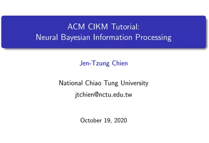 这个半天的教程介绍了各种信息系统的深度贝叶斯学习的基础知识和进展,这些信息系统包括语音识别、文档摘要、文本分类、信息提取、图像标题生成、句子/图像生成、对话管理、情感分类、推荐系统、问题回答和机器翻译等等。传统上,“深度学习”被认为是从源输入到目标输出的学习过程,其推理或优化基于实值确定性模型。单词、句子、实体、图像、视频、动作和文档中的“语义结构”在数学逻辑或计算机程序中可能无法很好地表达或正确地优化。自然句子或图像的离散或连续潜变量模型中的“分布函数”可能无法得到适当的分解和估计。为了满足源域和目标域的要求,迁移学习需要系统和精细的迁移学习。本教程介绍了统计模型和神经网络的基本知识,重点介绍了一系列高级贝叶斯模型和深度模型,包括变分自动编码器(VAE)、随机时间卷积网络、随机循环神经网络、序列到序列模型、注意机制、记忆增强神经网络、跳跃神经网络、时间差异VAE、预测状态神经网络和生成或归一化流。改进了先验/后验表示。我们将介绍这些模型是如何连接的,以及为什么它们在时间和空间数据的符号和复杂模式的信息和知识管理中起作用。为解决复杂模型的优化问题,提出了变分推理和抽样方法。词语嵌入、句子嵌入和图像嵌入在结构或语义约束下合并。针对神经贝叶斯信息处理中的不同问题,提出了一系列的案例研究。最后,提出了今后研究的方向和展望。本教程的目的是向初学者介绍深度贝叶斯学习的主要主题,激发和解释一个对数据挖掘和信息检索日益重要的主题,并提出一个新的结合不同的机器学习工作的综合。