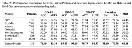 在蛋白质理解方面,本文评估了模型在以下三个分类任务上的性能:蛋白质位置预测、蛋白质功能预测 (基于Gene Ontology分类)、蛋白质金属离子结合能力预测。这些任务被设计成类似于自然语言中的阅读理解问题,其中每条数据包含一条蛋白质序列及一个问题,模型需回答是/否类型的问题。 在蛋白质序列理解和分类任务上,InstructProtein展示了优异的表现,超越了所有基线模型。研究指出,将蛋白质和自然语言结合的训练语料库有利于提高语言模型在蛋白质语言理解方面的能力。特别值得注意的是,InstructProtein在多种任务(包括指令数据集中见过的和没见过的任务)上显示出较强的泛化能力,而其他模型如Mol-Instructions因模板不足而未能有效理解任务需求。此外,封闭源模型(如ChatGPT等)也显示出在蛋白质位置预测任务中受到注释不平衡的影响,这进一步强调了优质指令数据集的重要性。值得注意的是,在蛋白质位置预测(Bin)任务中的奇怪结果是因为现存的大语言模型受到注释不平衡的影响将所有蛋白质分类为单一组