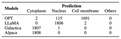 因此,在构建指令数据集时,我们不能简单地依赖现有的大型语言模型。我们需要采用其他策略或方法来确保数据集中各类子细胞器位置的合理代表性,从而让模型能够更加公平和准确地学习和预测这些位置。这可能包括人为介入以平衡数据集、使用合成数据来增强稀有类别的表示,或者开发新的模型架构和训练方法来更好地处理此类不均衡数据。
