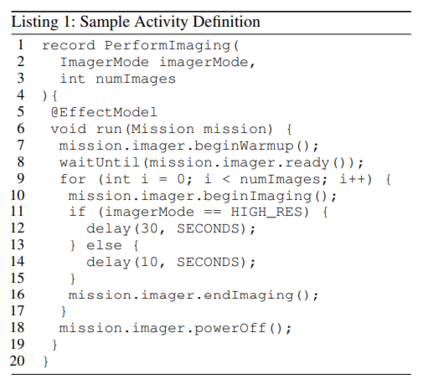 德国太空运行中心(GSOC)开发的 PINTA/PLATO 工具套件及其基于网络的时间轴客户端 TimOnWeb 也具有与 Aerie 类似的功能,并打算作为半自动任务规划系统运行(Nibler 等人,2017 年)。该系统使用一种被称为 "规划模型 "的建模语言进行操作,而 Aerie 则使用 Java 中的 eDSL 进行建模。PINTA/PLATO 有着悠久的历史,包括在 GRACE-FO 和 TerraSARX/TanDEM-X 任务中的应用。