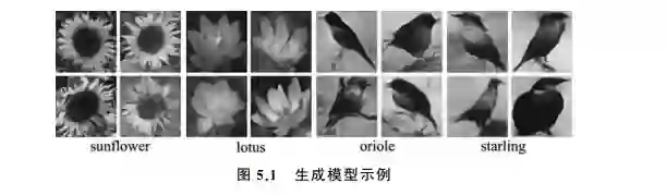 在深度学习中,可以将其模型分为生成模型和判别模型两大类[1]。生成模型可以通过 观察数据,学习样本与标签的联合概率密度分布P(x,y),然后生成对应的条件概率分布P (y|x),从而得到所预测的模型Y=f(x)。判别模型强调直接从数据中学习决策函数[2]。生成模型的目标是给定训练数据,希望能获得与训练数据相同的新数据样本。判别模型的 目标是找到训练数据的分布函数。在深度学习中,监督学习和非监督学习都包含其对应的 生成模型,根据寻找分布函数的过程,可以把生成模型大致分为概率估计和样本生成。概率估计是在不了解事件概率分布的情况下,通过假设随机分布,观察数据确定真正的 概率密度分布函数,此类模型也可定义为浅层生成模型,典型的模型有朴素贝叶斯、混合高斯模型和隐马尔可夫模型等。样本生成是在拥有训练样本数据的情况下,通过神经网络训练后的模型生成与训练集 类似的样本,此类模型也可以定义为深度生成模型,典型的模型有受限玻尔兹曼机、深度信 念网络、深度玻尔兹曼机和广义除噪自编码器等。 **5.1.2 生成模型的意义及应用 **