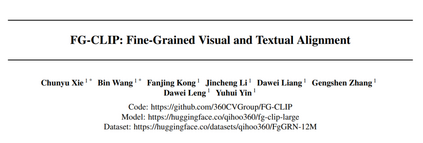 **对比语言-图像预训练(CLIP)**在图文检索和零样本分类等多模态任务中表现出色,但由于其侧重于粗粒度的简短图文描述,在细粒度理解方面存在不足。为了解决这一问题,我们提出了 细粒度CLIP(FG-CLIP),通过三项关键创新提升细粒度理解能力。 首先,我们利用大规模多模态模型生成了 16亿条长文本描述-图像对,以捕捉全局语义细节。其次,我们构建了一个高质量数据集,包含 1200万张图像和4000万个区域级别的边界框,并与详细文本描述对齐,从而确保精确、具有上下文信息的表示。第三,我们引入了 1000万个具有挑战性的细粒度负样本,提升模型区分细微语义差异的能力。 我们构建了一个综合性数据集,命名为 FgGRN,将高质量的区域级注释与具有挑战性的细粒度负样本整合在一起,并为这些数据精心设计了相应的训练方法。 大量实验表明,FG-CLIP 在多种下游任务中均优于原始的 CLIP 和其他最新方法,包括细粒度理解、开放词汇物体检测、图文检索以及通用多模态基准测试。这些结果突显了 FG-CLIP 在捕捉细粒度图像细节和提升整体模型性能方面的有效性。数据、代码和模型已开源,地址为:https://github.com/360CVGroup/FG-CLIP。