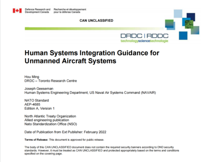 本STANREC针对的是需要解决无人机系统的设计、实施、采购、评估和运行中的人为问题/风险并为其提供资源的北约和工业界人员。本STANREC的主要用户是由所有利益相关者组成的综合项目组(IPT),包括设计、开发和/或采购UAS的项目经理、设计师和开发人员。本STANREC涉及与人有关的考虑和HSI活动,以使IPT成员了解它们与整个系统工程过程的相关性和重要性。尽管如此,参与无人机系统开发的所有各方,包括无人机系统的终端用户,都应该发现本STANREC的相关性。