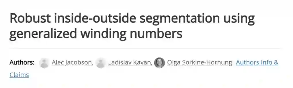 摘要:本文定义了一个用于识别 3D 网格内部体积的稳健算子,并已经成为处理网格的标准工具箱的关键组件,例如用于网格之间的布尔运算和四面体化算法。**