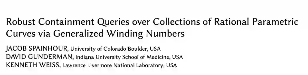 论文简介:该研究使用数值稳定算法将广义缠绕数理论扩展到有理参数曲线的非结构化集合,从而允许在任意位置对非水密和自相交形状进行稳健且准确的 containment 分类。 荣誉提名**