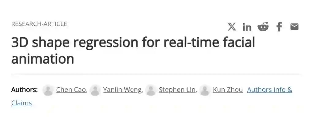 **ACM SIGGRAPH 时间检验奖颁发给过去十年对计算机图形学和交互技术产生重大且长远影响的论文。今年是设立该奖项的第二年,考虑了 2012 年至 2014 年期间在 SIGGRAPH 会议上发表的论文。 以下四篇论文获得了 SIGGRAPH 2024 时间检验奖: 论文 1:3D Shape Regression for Real-Time Facial Animation (2013)