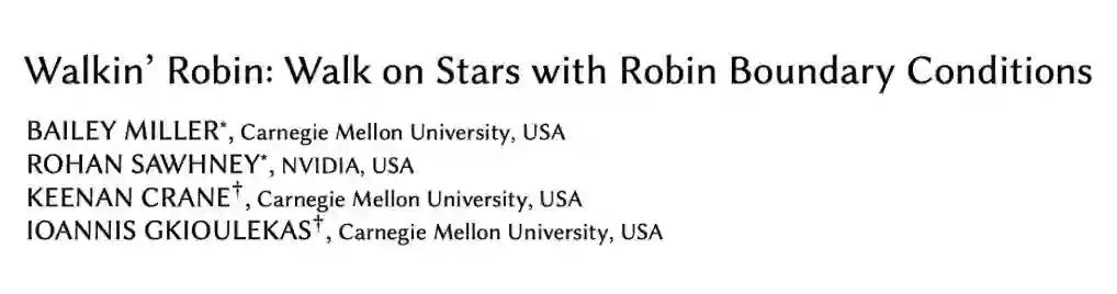 论文简介:该研究推导出随机隐式表面上的光传输理论、并提出一个能够表达确定性几何、微表面、参与介质,以及令人兴奋的新连续体的几何模型。该模型原生支持空间相关性,这是大多数现有随机模型所缺少的。 论文 2:Walkin’ Robin: Walk on Stars With Robin Boundary Conditions
