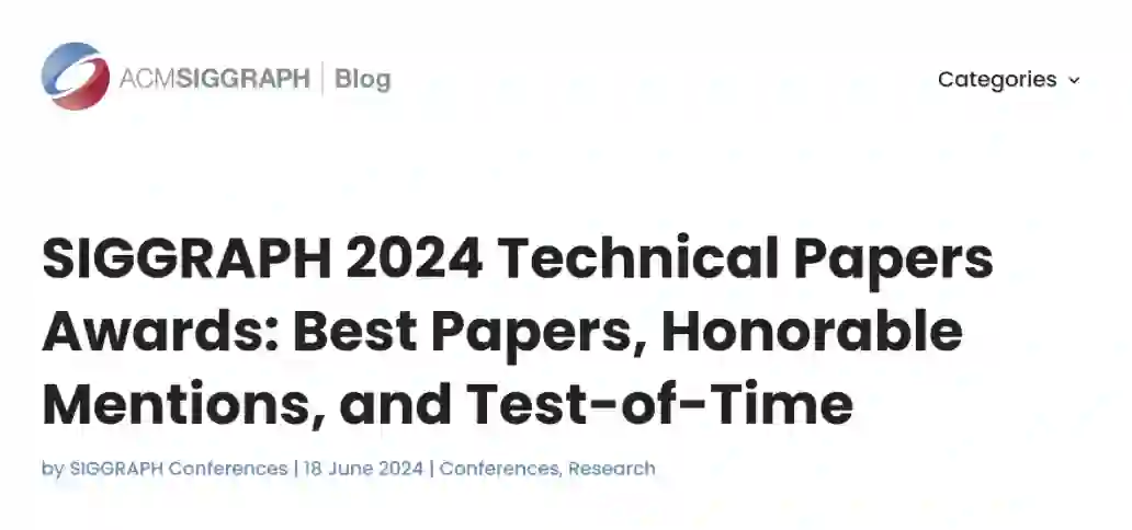 编辑:杜伟、小舟今日,图形学领域最具权威的和影响力的国际顶会 ACM SIGGRAPH 发布了本年度的最佳论文、荣誉提名和时间检验奖。