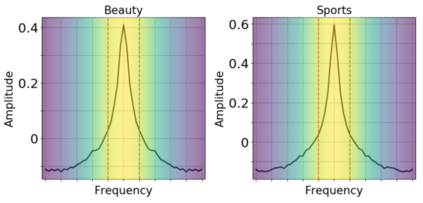 在实验的最后,我们从训练完成的模型中输出了FMLP-Rec的可学习滤波器,并且选取Beauty和Sports数据集上训练的滤波器制作成图,可以看到不同数据集上的滤波器形状大致相同。图中由黄色到紫色表示频率由低到高,那么这些滤波器的形状可以近似看做一种低通滤波器,红色虚线之内的低频成分基本为正向增益,其余部分随着频率升高,逐渐从衰减变为较弱的反向增益。