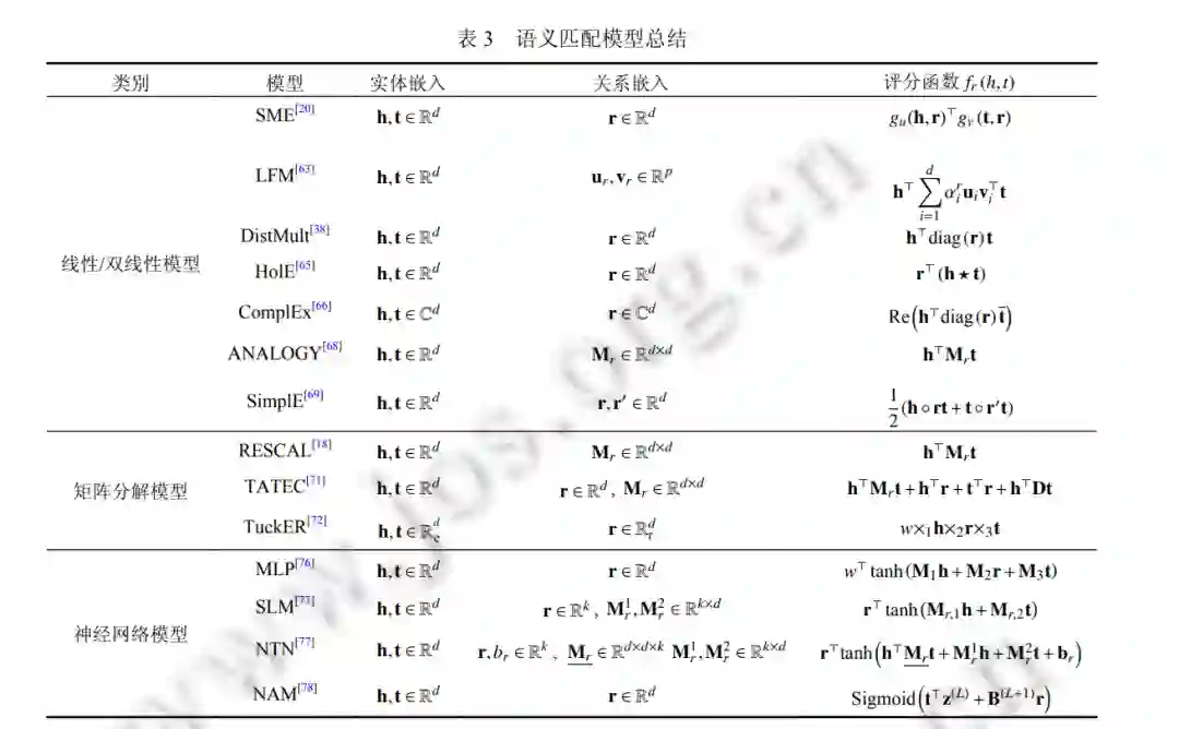 语义匹配模型利用基于相似性的评分函数, 即通过语义匹配来衡量事实的合理性. 语义匹配通常采用乘法公式 (h⊤Mr≈t⊤)(h⊤Mr≈t⊤) 来变换表示空间中的头实体, 使其与尾实体相近. 本节根据实体和关系编码的不同模型结构来介绍代表性的语义匹配模型.