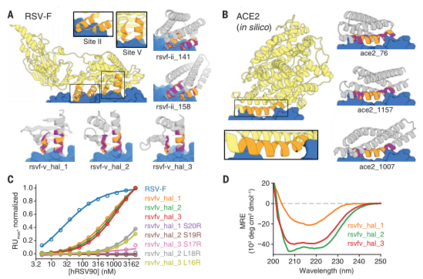 例如对呼吸道合胞病毒(RSV)的验证,研究人员针对其抗原表位用AI设计了37个新兴蛋白质,其中三个以0.9-1.3μM的结合力与RSV的中和抗体结合,为相关疫苗开发提供新的思路。