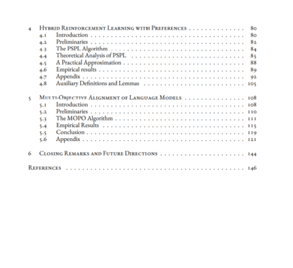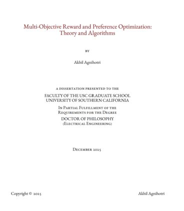 强化学习(Reinforcement Learning,RL)是一种通过与环境交互来学习最优序列决策的机器学习(Machine Learning,ML)技术。近年来,RL 在众多人工智能任务中取得了巨大成功,并被广泛认为是迈向通用人工智能(Artificial General Intelligence,AGI)的关键技术之一。在这一背景下,受约束强化学习(constrained RL)逐渐发展成为一个重要研究方向,旨在解决在多样化应用场景中、在约束条件下优化决策行为的挑战。本论文提出了一系列新的理论基础与实用算法,以推动受约束强化学习领域的发展。 论文首先研究了平均回报准则下的受约束马尔可夫决策过程(Constrained Markov Decision Processes,CMDPs),并提出了平均受约束策略优化(Average-Constrained Policy Optimization,ACPO)算法。ACPO 结合灵敏度理论(sensitivity theory)与信赖域优化(trust-region optimization)技术,不仅在复杂环境中相较于现有最先进方法展现出更优的经验性能,还提供了坚实的理论保证。随后,论文将受约束强化学习扩展至情节式(episodic)设置,提出了 e-COP 算法,这是首个专门针对有限时域 CMDP 的策略优化框架。e-COP 基于一种新的情节式策略差分引理(policy difference lemma),在保持算法简洁性与可扩展性的同时,具备稳健的理论保证。其在安全约束基准任务中的成功表现,凸显了其在更广泛应用中的潜力,例如基于人类反馈的强化学习(Reinforcement Learning from Human Feedback,RLHF)。 针对 AGI 背景下 RLHF 重要性的不断提升,亟需能够将人类偏好反馈有效融入 RL 算法的方法。鉴于人类反馈往往具有噪声性,论文提出了 warmPref-PS,一种后验采样(posterior sampling)算法,旨在在线性多臂老虎机环境中,将来自不同能力水平评审者的离线偏好数据整合进在线学习过程。该算法显著降低了遗憾(regret),并验证了通过建模评审者能力来实现自适应数据采集与模型微调在 RLHF 场景中的有效性。进一步地,论文深入探讨了基于偏好的强化学习(Preference-based RL,PbRL),该范式以二元轨迹比较而非显式奖励作为学习信号。通过利用离线数据集并建模评审者能力,论文提出了 PSPL 算法,该算法同时对奖励模型与转移动态进行后验采样。论文给出了 PSPL 的贝叶斯简单遗憾(simple regret)理论界,并通过实验结果验证了其在识别最优策略方面的正确性与鲁棒性。 最后,论文将上述优化方法与 RLHF 的理论成果落地到实际应用中,从受约束优化的视角研究大语言模型(Large Language Models,LLMs)的多目标对齐问题:在最大化主目标的同时,约束次级目标不低于可调阈值。由此提出了一种迭代算法 MOPO,该算法具有闭式更新形式,能够扩展至数十亿参数规模的 LLM,并且对超参数选择具有较强鲁棒性。 通过上述一系列贡献,本论文在多种范式下统一了受约束强化学习的研究框架,从策略优化到偏好对齐,不仅深化了对受约束决策问题的理论理解,也显著提升了其实践有效性。