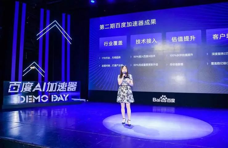 百度AI加速器负责人、百度AI技术平台体系执行总监吴甜用向外界展示了二期成员企业的提升:五个月内,第二期成员企业总估值实现了翻番,5家获得了新一轮融资,20余家成员企业在2018年预计总利润同比增长近140%。与此同时,有11家企业发布了新产品,15家企业实现了原有产品的升级换代,深度服务B端客户2万家,并让数以亿计的C端用户享受到了全新的AI体验。