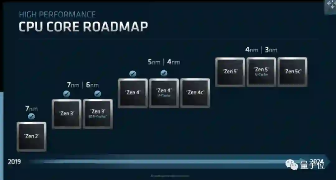 Zen5将基于4nm和3nm的工艺节点,且像Zen4那样也包括三个微架构:Zen5、Zen5V-Cache和Zen5c。
