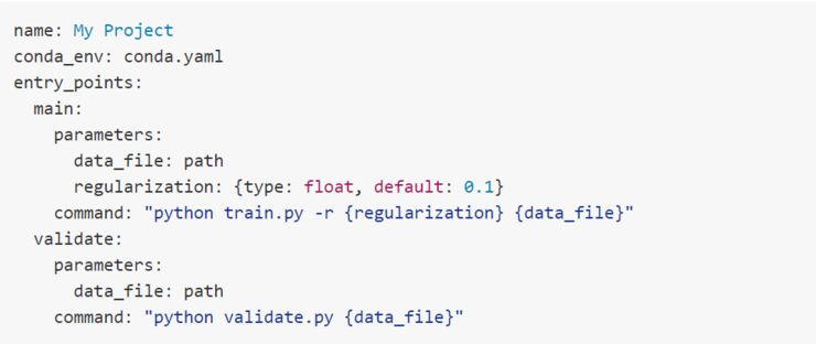 project 能借助 Conda 环境来说明其依赖关系。一个 project 可能存在多个调用程序的 entry 点(已经指定参数)。你可以使用 mlflow run 命令工具运行来自本地文件或 Git 库中的 project。