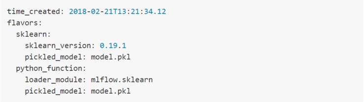 在上面这个例子中,该模型可与支持 sklearn 和 python_function 模型 flavor 的工具一起使用。