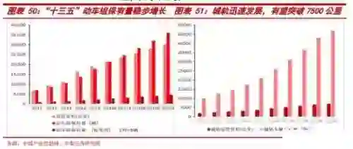 以高铁为代表的轨道交通系统正不断更新换代,交流传动技术已是现代轨道交通的核心技术之一,在交流传动系统中牵引变流器是关键部件,而 IGBT 器件已成为轨道交通车辆牵引变流器和各种辅助变流器的主流电力电子器件。根据国家发改委发布的《中长期铁路网规划》, 预计十三五期间铁路总运营里程新增约 3 万公里,其中高速铁路新增 1.1 万公里;地铁运营里程将翻番。预计新增机车需求 5000 辆,新增动车 2300 标准列;城轨方面,预计新增城轨车辆 25000 辆左右,十三五期间全国轨道交通总投资约 4-5 万亿元。