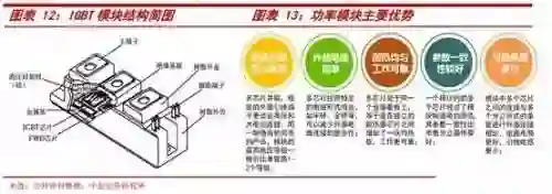 功率模块是指将多个功率器件芯片以绝缘方式组装到金属基板上进行模块化封装的功率半导体产品。相比于分立器件,功率模块电压规格更高、工作更可靠。目前功率模块产品约占整个功率半导体市场的 30% 左右,市场占比逐年上涨。IGBT 模块是当前最热门的功率模块化产品。