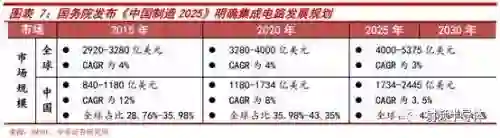 2015 年 5 月,国务院发布《中国制造 2025》重点领域技术路线图,预计至 2030 年,中国集成电路市场规模占全球的比例将达到 43.35%—45.64%,中国将成为世界最大的 IC 产业链设计、制造基地,在诸多优势领域达到世界先进水平。其中提到大力推动电力装备这一重点领域的突破发展,包括对大功率电力电子器件这一关键元器件的开发。