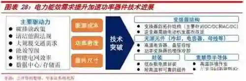 电力电子变换器能效需求升级,加速功率器件技术突破目前我国用于电机的电能约占我国总发电量的 60% 左右,根据相关数据粗略推算,如果全国电机的驱动都采用功率半导体进行变频调速,可节约电能大约 30% 左右,全国总发电量可节约 15% 至 20%。电力电子变换器是能源转换的核心器件,电能效率的提升离不开功率器件的技术进步,且随着应用领域的拓展,逆变器尺寸向小型化发展,结构更紧凑,对功率器件的材料及封装工艺提出了更高要求。