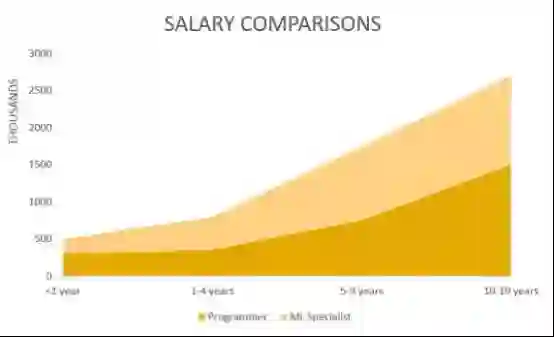 然后看印度,他们对程序员和机器学习专家的收入做了一个对比。结果呢,机器学习专家的收入不仅始终高于开发者,而且差距还越拉越大。