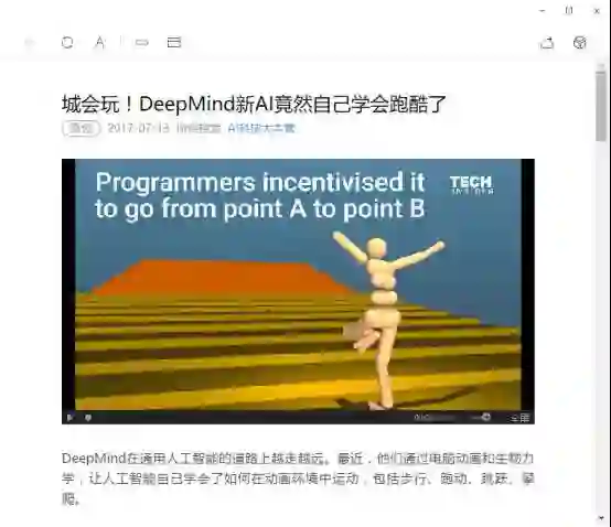第二件事情,最近DeepMind公布了两分钟的Video,他们利用深度增强学习,教会虚拟空间的木偶走路、跳跃、跨越,甚至在漂浮的木条上保持平衡和跳跃。这些木偶并不知道什么叫走路,仅仅是给它目标,给他激励,他就自己学会了走路,自己学会了跨越障碍物,甚至可能在一些复杂情况下比人的表现要好得多。这充分展现了深度学习的潜力。