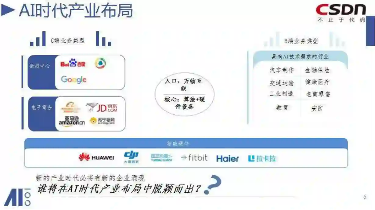 所以在C端,实际上我们的机会就不是很大了,因为这些公司手上的数据太大了。其实在B端,AI时代产业B端布局会比移动互联网更大。