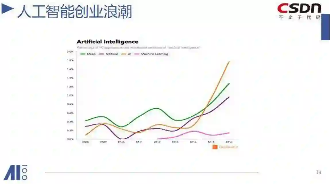 这是来自YC的分析图。从上图可以看出,学术界的突破在2012年,从2014年起进入创业高峰期,2017年进入爆发期。