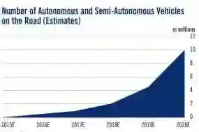 一个重点的行业是自动驾驶。同样来自麦肯锡的报告,预测从2015年到2010年,自动驾驶和半自动驾驶车辆的数量将从100万上升到1000万台。汽车这是一个几万亿美元的产业,单单只要考虑这一个产业的转型,对于 AI 就足以产生巨大的牵引力。