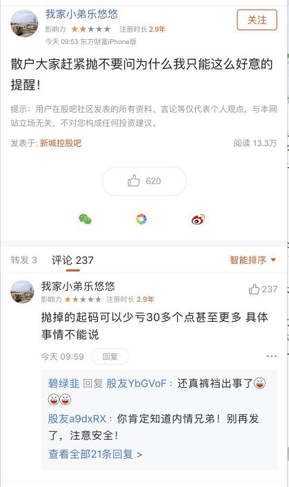 这事发生在6月29日,新城控股董事长被采取强制措施是在7月1日,大股东发生如此严重事情,尽管网上已经有善良的知情者好心做了及时提醒(见下图),但直到暴跌的今天,相关上市公司仍未做任何公告——一家公众上市公司,作恶如斯!