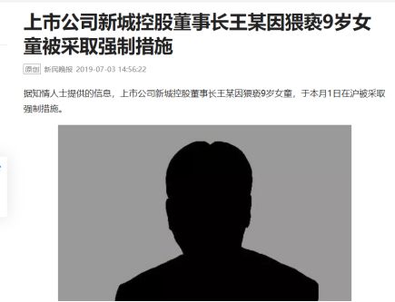7、2019年,坐拥三家上市公司的新城董事长猥亵9岁女童;