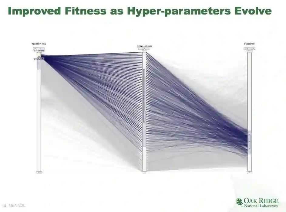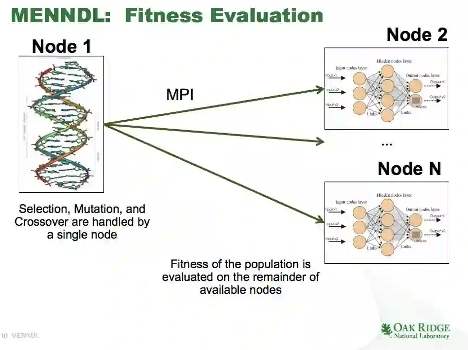 由于深度学习具有相对自动特征生成和高精度分类能力,近来在成像和语音应用中取得了许多成功。虽然这些模型通过数据驱动的方法学习参数,但通过超参数选择的模型选择(作为架构构造)仍然是单调乏味且高度直觉驱动的任务。为了解决这个问题,我们提出了多节点深度学习的进化神经网络(MENNDL),作为一种通过遗传算法进行超参数优化来实现计算集群网络选择自动化的方法。