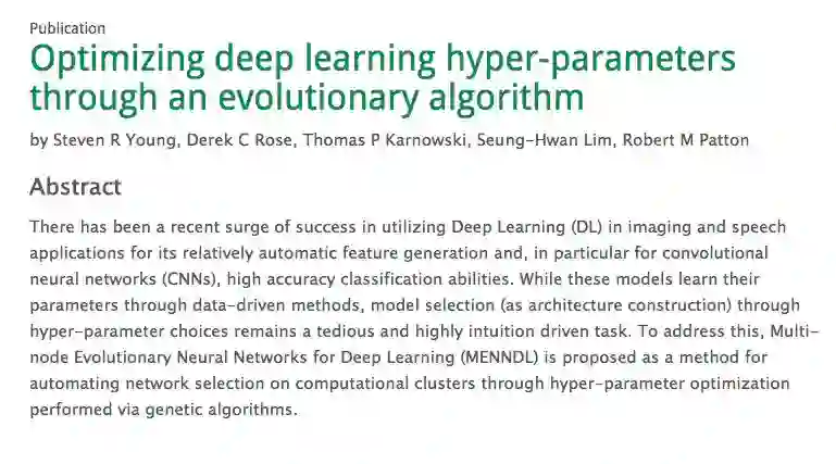 该研究团队发表了一篇名为Optimizing deep learning hyper-parameters through an evolutionary algorithm的论文。以下是论文摘要:
