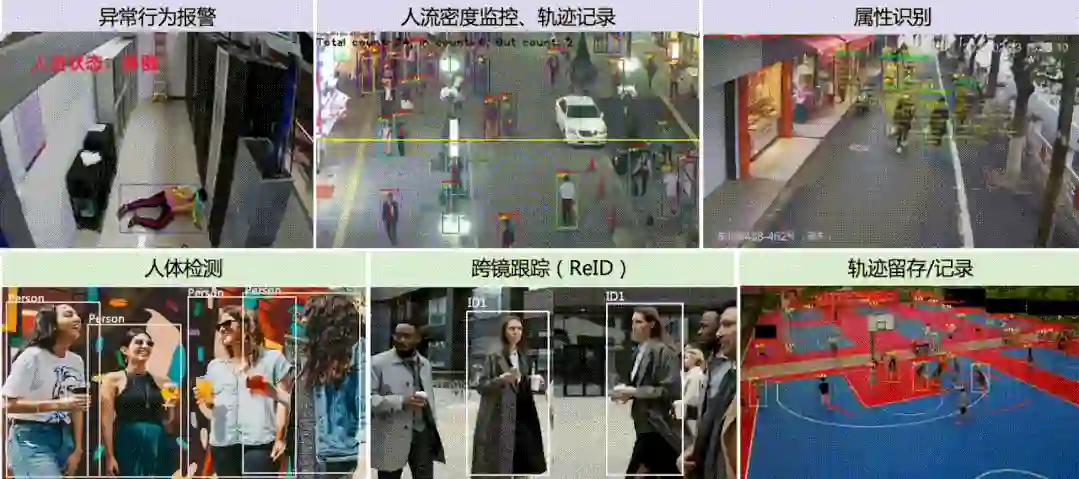 目标检测、属性分析、关键点检测、行为识别、ReID