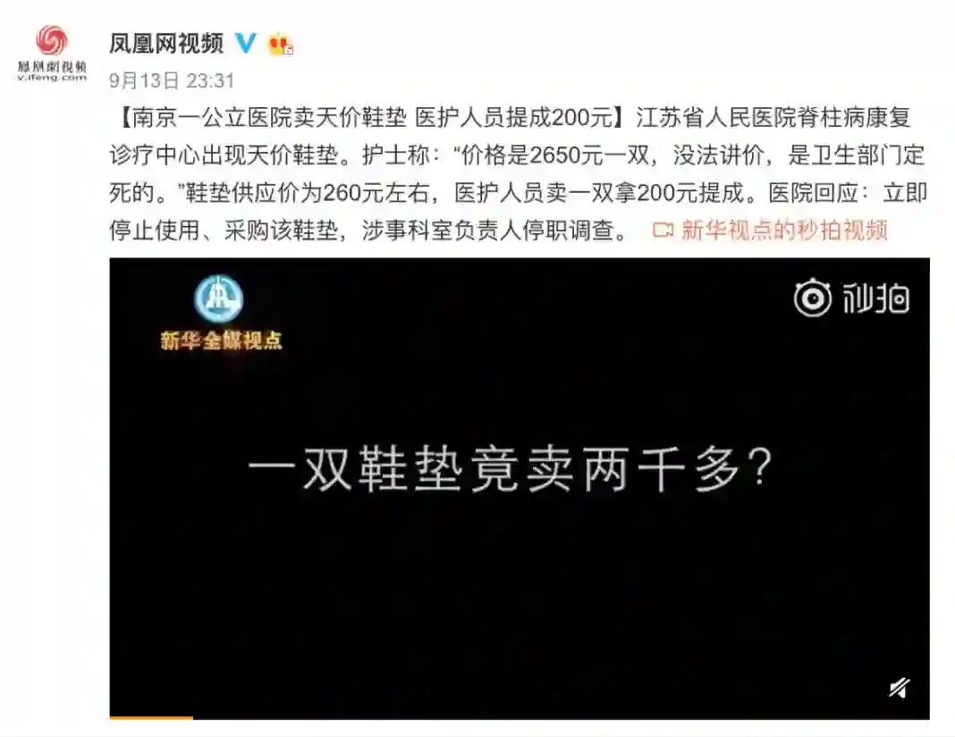 最近,多家媒体报道了江苏一家医院的“天价鞋垫”新闻。新闻中提到,这家医院的脊柱病康复诊疗中心将进价260元的鞋垫“稍做加工之后”以2650元的高价卖给患者,毛利2000多元。很多人因此惊呼:这简直是暴利。