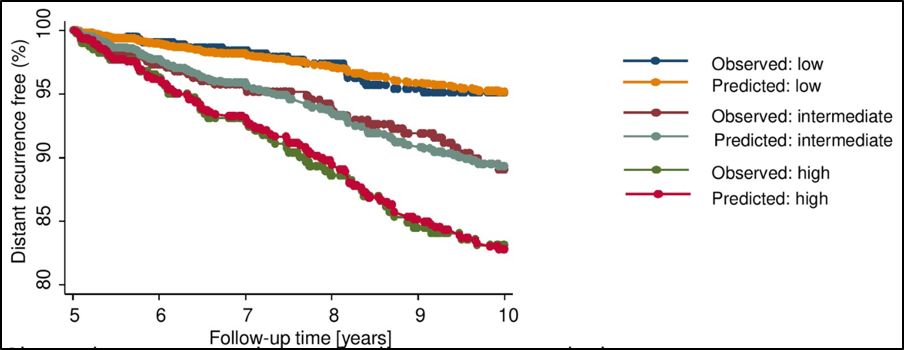 图2 CTS5对绝经后远期远处转移的复发风险与观察结果高度一致