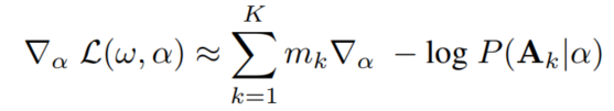 式中, 为模型权重。数据似然的连续积分是通过抽样架构和平均来逼近的。在抽样架构中可以通过估计梯度联合优化架构参数 和模型权值 。