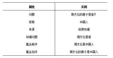如果答案来自于问答社区(在哈工大SCIR深度问答系统中即为百度知道),则利用答案基于规则改写对应的百度知道问题为陈述句以后作为蕴含前件。比如对于“周杰伦的妻子是谁?”这个问题,深度问答系统返回的是“中国人”,其来自于百度知道,对应的问题为“周杰伦是谁”。我们使用答案“中国人”和百度知道问句“周杰伦是谁”基于规则改写知道问句为陈述句“周杰伦是中国人”做为蕴含前件;同时使用答案“中国人”和问题“周杰伦的妻子是谁?”基于规则改写问题为陈述句“周杰伦的妻子是中国人”做为蕴含后件,然后即可采用文本蕴含识别模型判断构造出的两个陈述句间的蕴含关系,进行答案验证。如表 2所示: