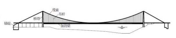 悬索桥的承重结构是悬挂在两边塔架上的强大缆索,在竖向荷载作用下,通过吊杆使缆索承受很大的拉力,通常就需要在两岸的桥台的后方修筑非常巨大的锚定结构,因此,悬索桥也具有水平反力。