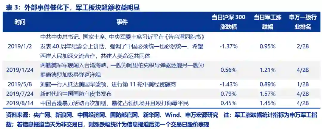这一逻辑下,军工板块通常和稀土、大豆等一道成为外部风险事件冲击下的对冲板块。