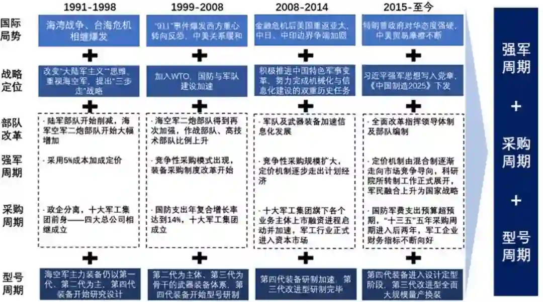 2.1 业绩改善的逻辑在于“强军+采购+型号”三大周期叠加驱动行业成长