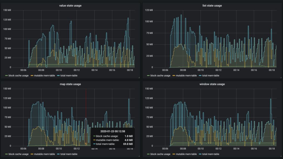 此外,我们还将 RocksDB state backend 使用的内存纳入了托管范畴,同时可以通过简单的配置来指定其能使用的内存上限和读写缓存比例(FLINK-7289)。