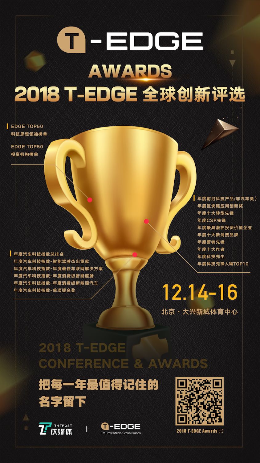 钛媒体 2018 T-EDGE Awards 两大榜单十五大奖项报名自荐全面开启,诚邀您扫码参选(点击阅读原文或识别下方图片二维码,获取更多信息)