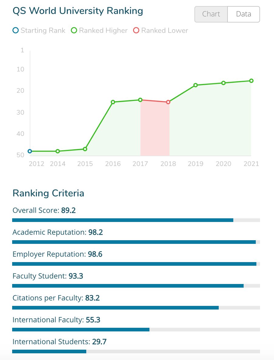 值得注意的是,在这一次的 QS 世界大学排名中,亚洲地区院校的排名情况出现了显著的上升,共有 26 所大学跻身世界前 100 名,也是迄今为止数量最多的一年。